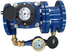 The piping water enters into the water meter from the inlet of the meter. According to the current, if the current is little, it is amounted by the small-bore water meter. If the current is up to the certain data, the strength conversion installation will control the current to make it flow into both big-bore water meter and small-bore water meter. The rotation of the helix turbine is transmitted to the clockwork through the worm gearing and the magnetic steel.The sealed register totalizes the rotation of the helix turbine and indicates the water volume passing through the meter.